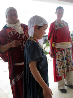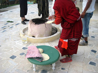 Ainda neste passeio nos vestiram com roupas bérberes, vimos a preparação do pão e a sua cozedura no forno típico, comemos o pão depois de cozido com azeite e demos de comer cactos com picos aos dromedários.