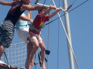 Jogou ténis, futebol (era sempre a actividade que mais contava ao fim do dia), piscina, tiro ao arco... E como se novas experiências não lhe chegassem também nos pregou um susto e passou uma noite (com o papá) numa clínica privada a soro! Dizem que foi uma pontada de sol.