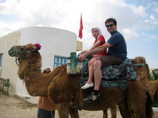 Fizémos um passeio pelo campo Tunisino de dromedário. O Campeão preferiu fazer o passeio a cavalo e depois de carroça. Só no fim andou de dromedário com o chefe.